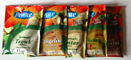 La soupe (çorba, au pluriel çorbalar) en poudre est un plat typiquement nomade. Les aliments déhydratés sont en effet plus faciles à transporter et il suffit d'ajouter de l'eau pour les consommer. Tous les étés, on voit encore des légumes sécher sur les balcons, à la campagne comme à la ville, et jusqu'à Ankara.