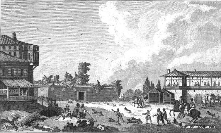 James Dallaway (1763-1834) fut chapelain et médecin de l'ambassade anglaise à Istanbul. Il publia, en 1797, "Constantinople ancient and modern : with excursions to the shores and islands of the Archipelago and to the Troad" traduit en Français sous le titre "Constantinople ancienne et moderne, et description des côtes et des isles de l'Archipel et de la Troade par Jacques Dalaway, ... ; traduit de l'anglais par André Morellet", Paris, Denné, 1799.