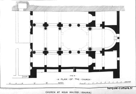 Extrait de Arthur C. Headlam, Ecclesiastical Sites in Isauria (Cilicia Trachea) (The Society for the Promotion of Hellenic Studies. Supplementary Papers, 2 [London: Macmillan & Co., 1893]1). On distingue bien les 3 principaux bâtiments.